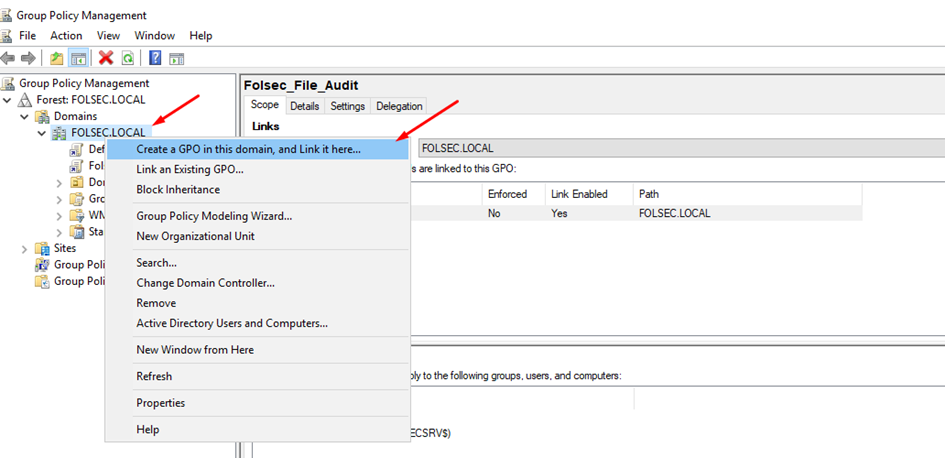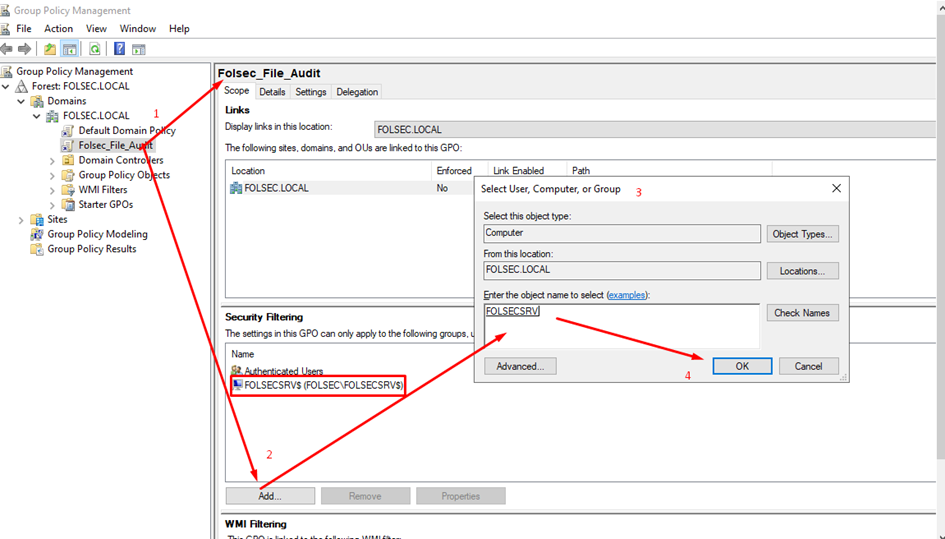 3. We are adding the server where we will perform the file audit process to the group policy.