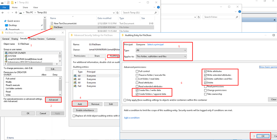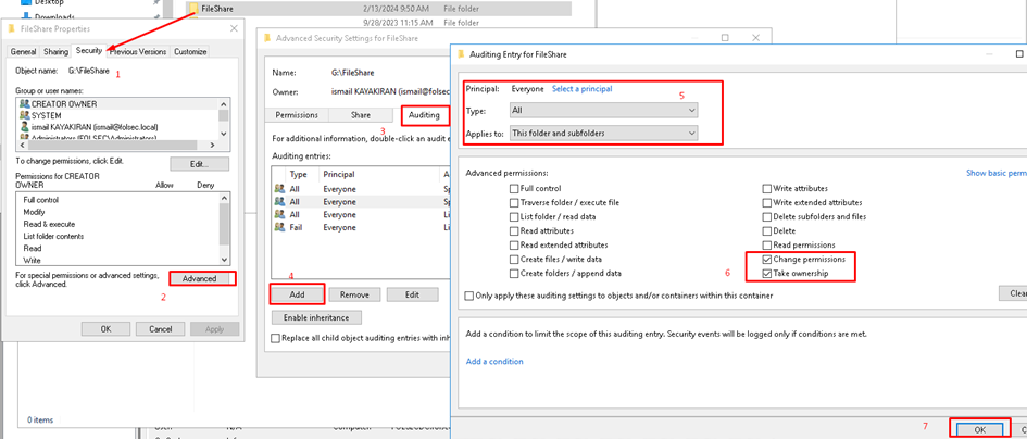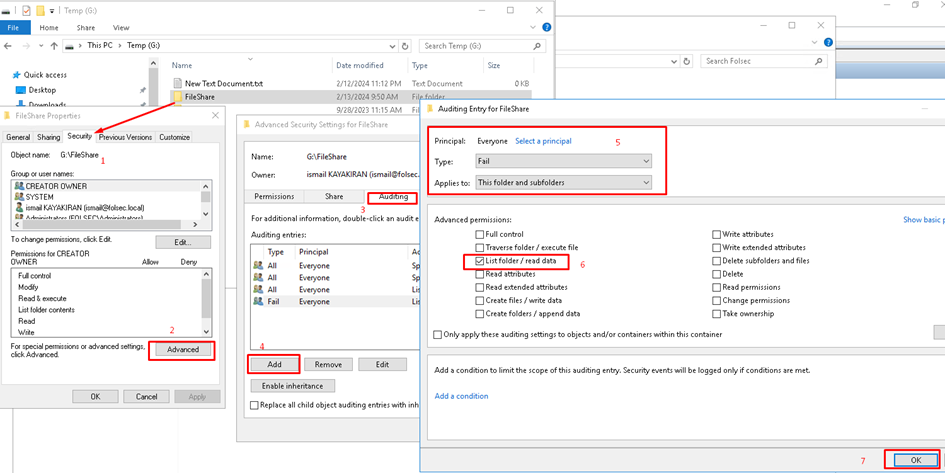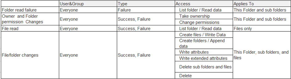 4. The audit process is enabled for the folder that has been opened for sharing.
