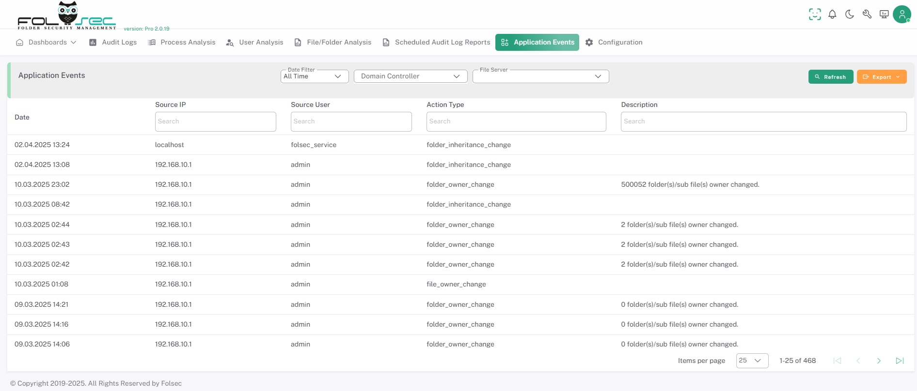 Folsec's Application Activities menu is a useful tool for monitoring and managing application-based activities. Thanks to this menu, critical movements performed by users in the system can be followed in detail. In particular, it allows us to monitor who is logging in and logging out of the system.