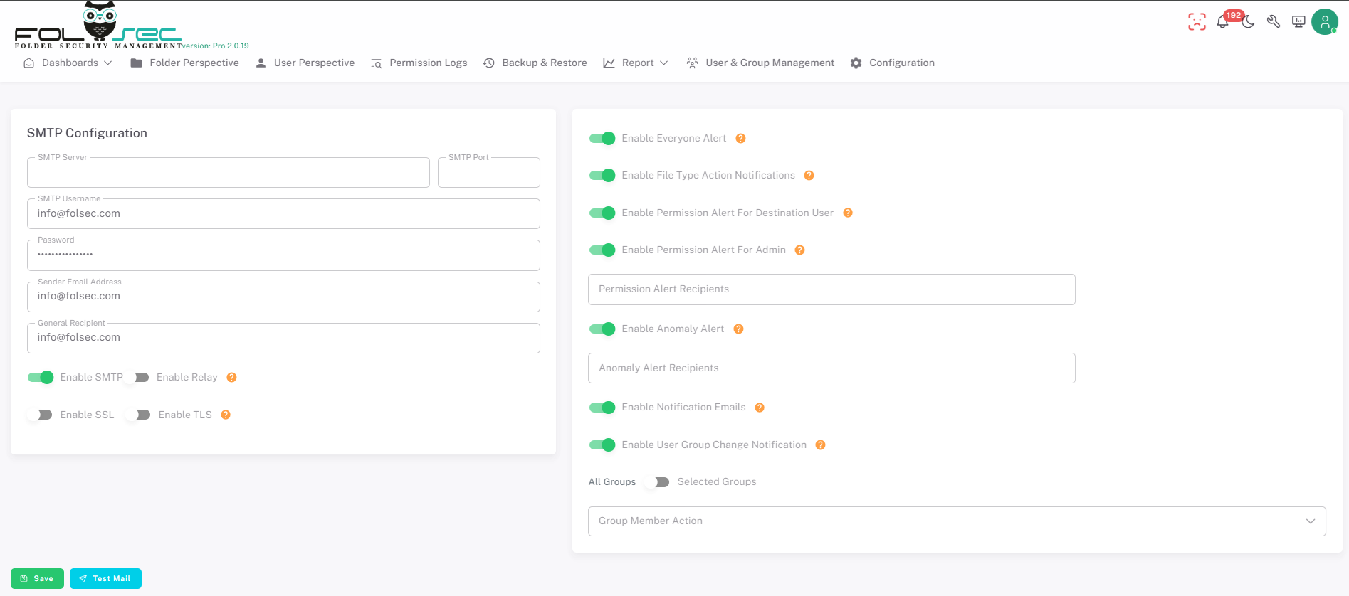 FOLSEC's SMTP Configuration menu allows system administrators to ensure that notifications about different actions reach the right people via email. Below is a summary of the features in this menu in accordance with the SEO rules: